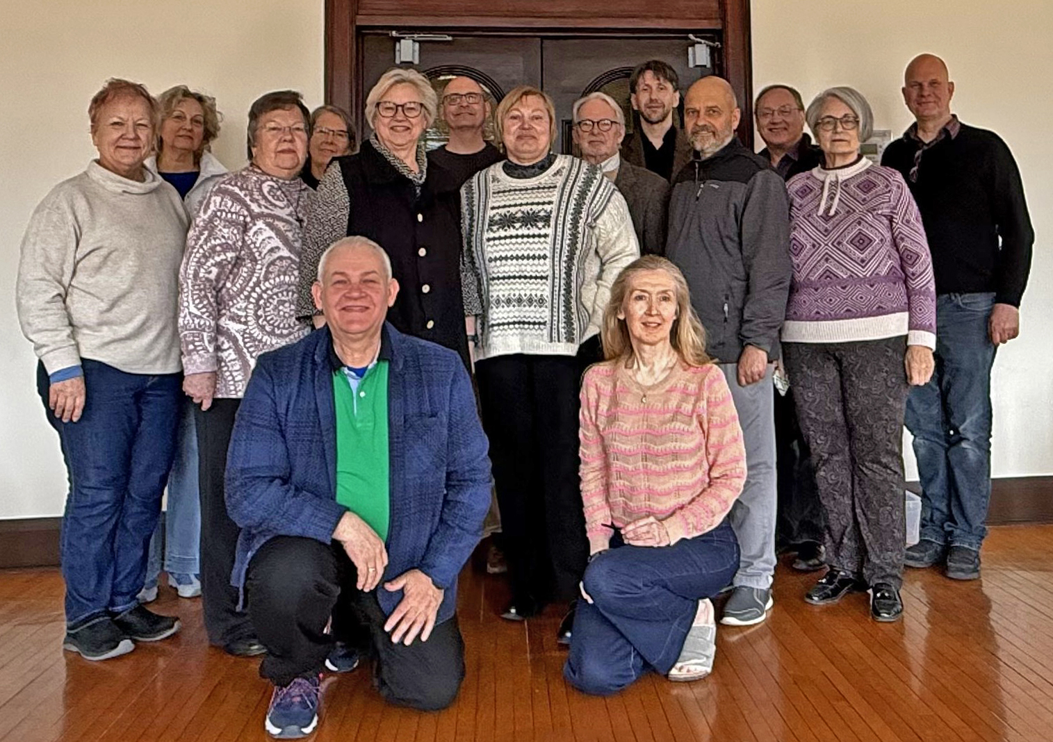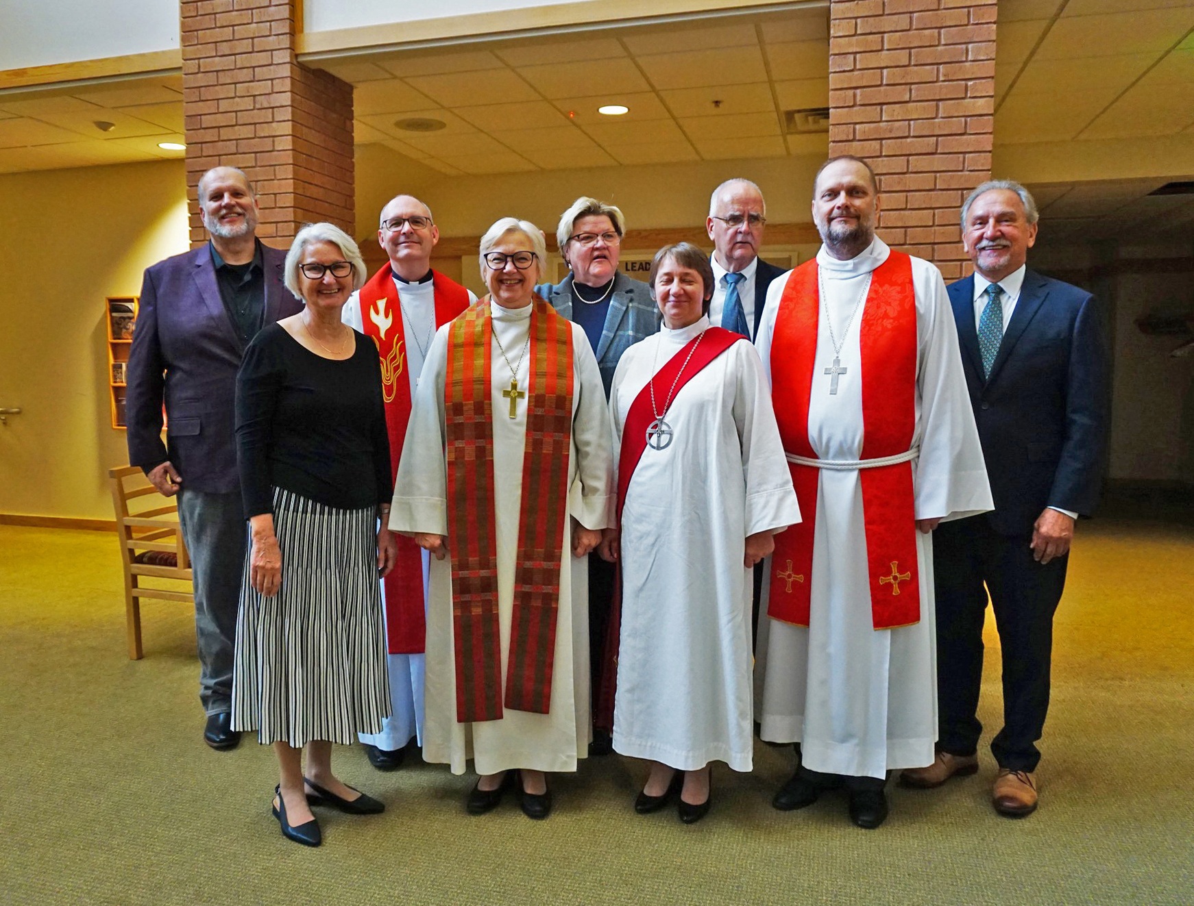 Pēc Garezera jubilejas svinīgā dievkalpojuma 2025. gada jūlijā; no kreisās: prāveste emer. Ilze Larsen, diakone Guna Reina, prāveste Dr. Sarma Eglīte, archibīskape emer. Lauma Zušēvica, prāveste Anita Vārsberga–Pāža, mācītājs Roberts Franklins, mācītājs Ivo Roderts